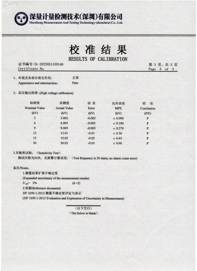 檢測儀器報告證書:電火花檢測儀jg-802